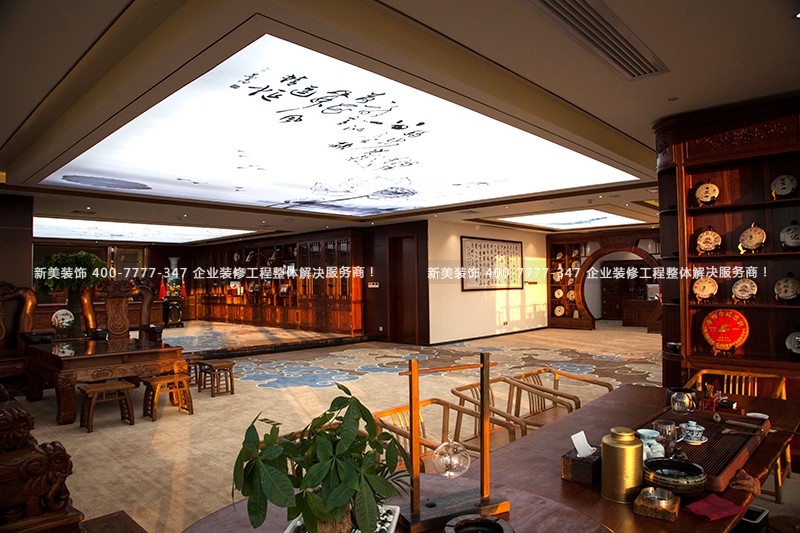 莊嚴(yán)穩(wěn)重的前廳背景用自然的木調(diào)、大理石的辦公臺(tái)、金色的公司名、特別造型的吊頂,傳統(tǒng)與現(xiàn)代風(fēng)格的碰撞。體現(xiàn)的正是公司的深厚文化底蘊(yùn)。