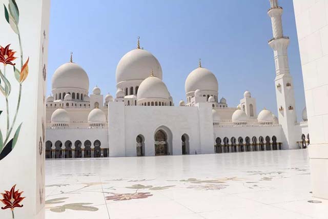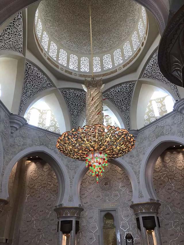 謝赫扎耶德清真寺是為已故老國王扎伊德所建,是阿聯(lián)酋的標(biāo)志性建筑﹐整個(gè)建筑群都用來自南斯拉夫的白玉大理石,莊嚴(yán)肅穆,充分體現(xiàn)了伊斯蘭的風(fēng)格。