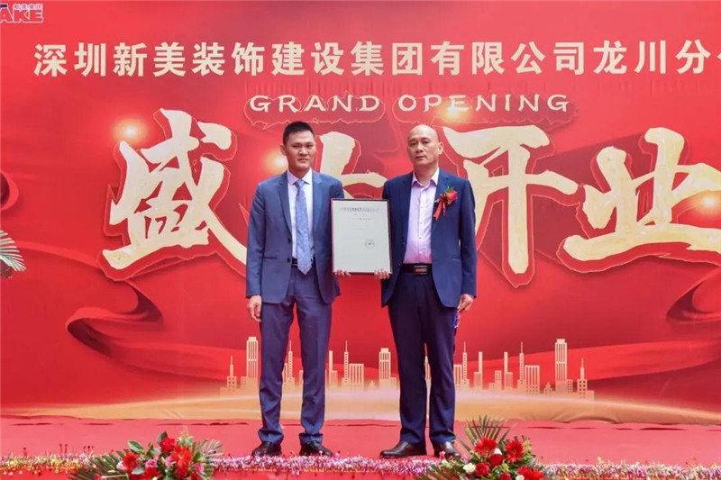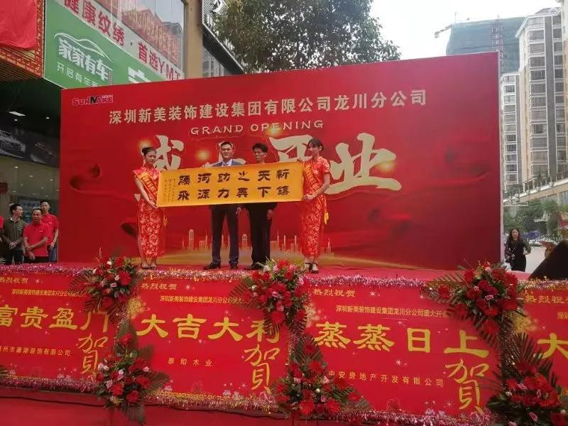 2021年4月18日,深圳新美裝飾建設集團有限公司龍川分公司正式成立,新美裝飾建設集團執行總裁曹林青、客戶總監湯靈靈等到達現場與龍川分公司總經理張洪共同參加開業儀式,現場一片歡聲笑語,共同祝愿新美裝飾建設集團龍川分公司開業大吉!