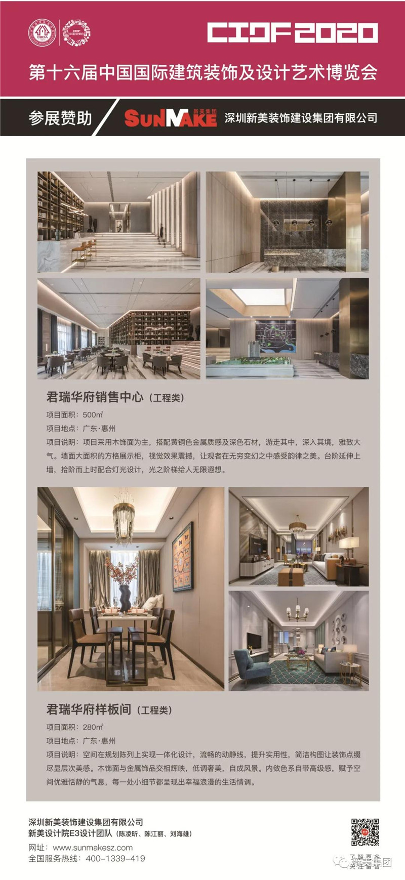 榮譽見證品牌力量!由深圳新美裝飾建設集團有限公司施工的“惠州君瑞華府銷售中心&樣板房”項目,經專家委員會評審和組委會綜合評定,最終斬獲“2020第十六屆中國國際建筑裝飾及設計藝術博覽會華鼎獎”精品工程獎,并榮獲“2019-2020年度中國建筑裝飾行業最具商業價值設計機構”的殊榮。