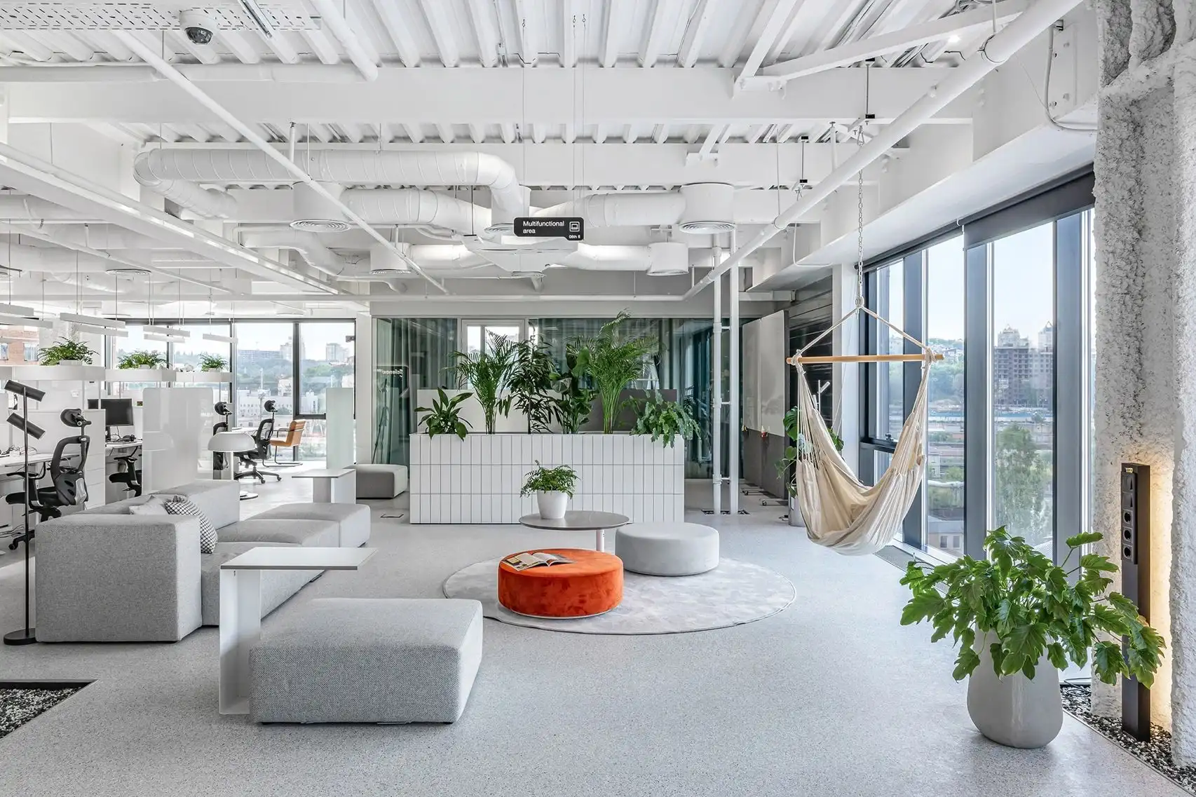 在現(xiàn)代辦公室設(shè)計中,簡約干練是一種常見的風(fēng)格選擇。通過減少多余的裝飾和繁瑣的元素,以簡潔的線條和明亮的色彩,創(chuàng)造出整潔、清爽的工作環(huán)境。
