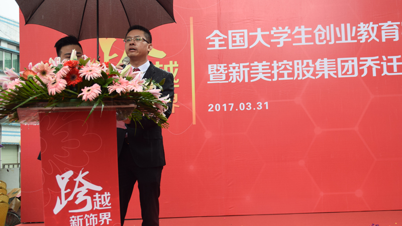 隨后,新美控股集團董事長李德峰先生登臺致辭,李董是一位非常務實的企業家,他講述了新美成功由一家傳統的工程公司成長為裝飾行業的平臺巨龍的奮斗歷程,展望了新美未來的發展之路。