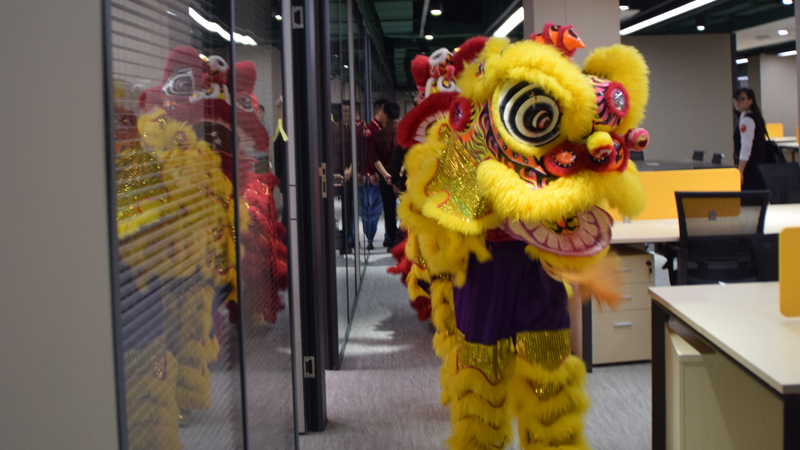 最后的舞獅表演給本次揭牌儀式暨喬遷慶典劃上圓滿句號,到場嘉賓隨后自由參觀新美創意大廈,三五成群,高談嬉笑。
